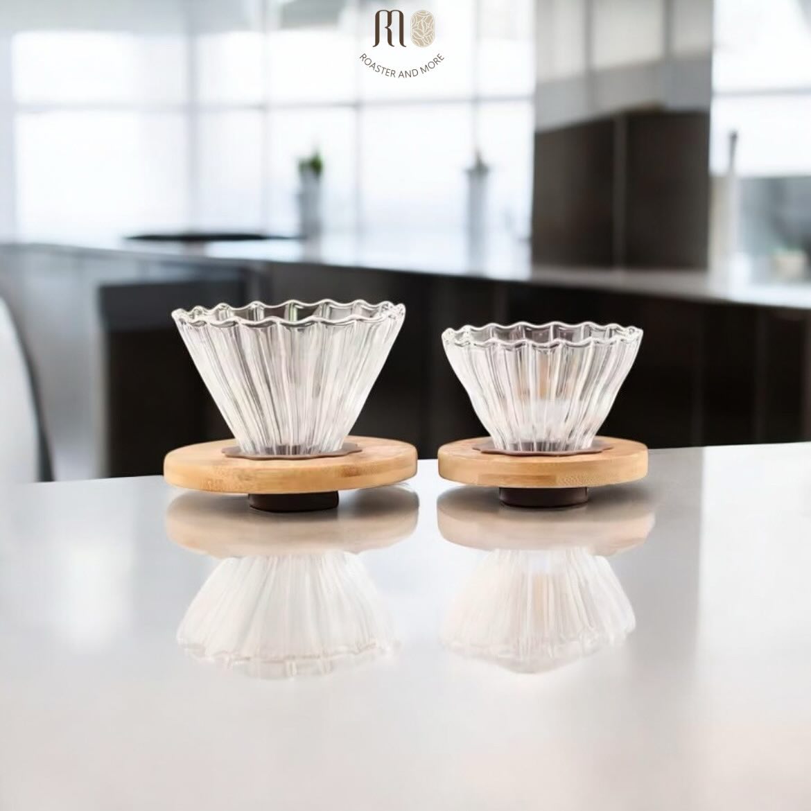 قمع زجاجي مع قاعده خشبية ، الحجم V01 و V02
